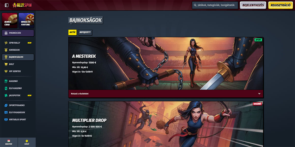 Az AllySpin Kaszinó 2024-ben lépett piacra a Stellar LTD alatt, egyértelmű hangsúllyal a méretek, a változatosság és a rugalmasság terén. A platform egyesíti a kaszinójátékokat, az élő asztalokat és a sportfogadást egyetlen számla alatt, teljes euró fizetési támogatással és kriptovaluta használattal. A felület strukturáltnak és gyorsnak tűnik, világos navigációval és szilárd teljesítménnyel asztali és mobil eszközökön. Magyarország számára a beállítás akadálymentesen működik, beleértve a VPN-hozzáférést, az alacsony belépési korlátokat és a kaszinóhoz és sportjátékokhoz kötött széles bónusztruktúrát.