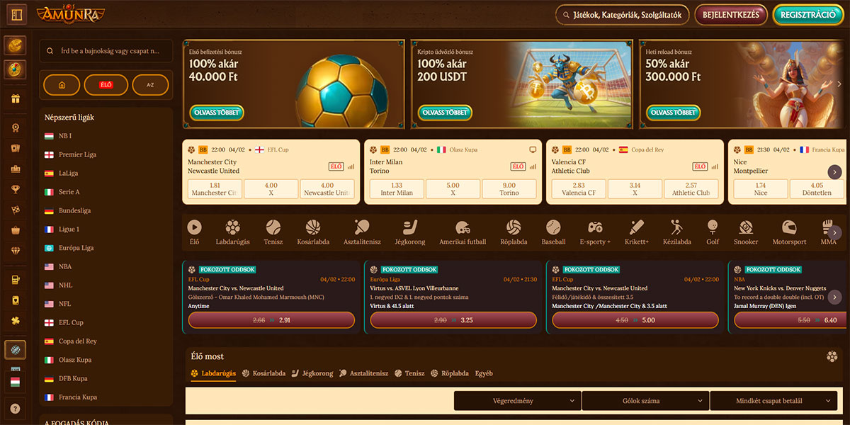 - Integrált sportfogadás és élő fogadási szekció.