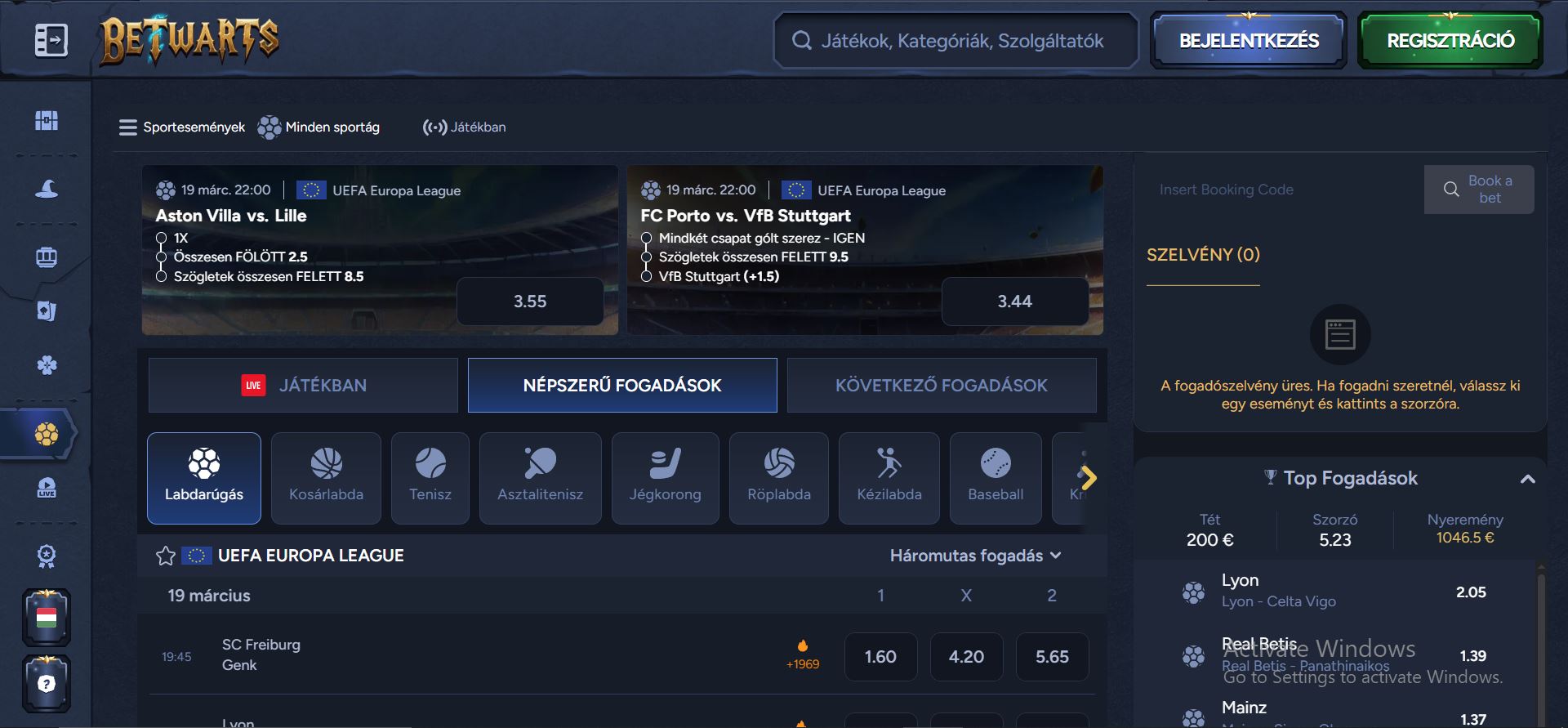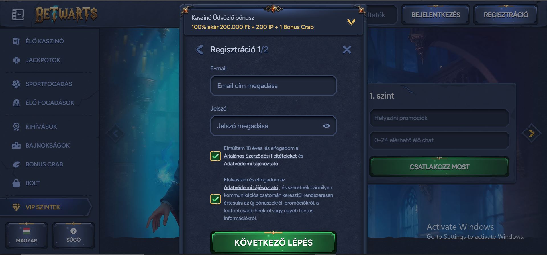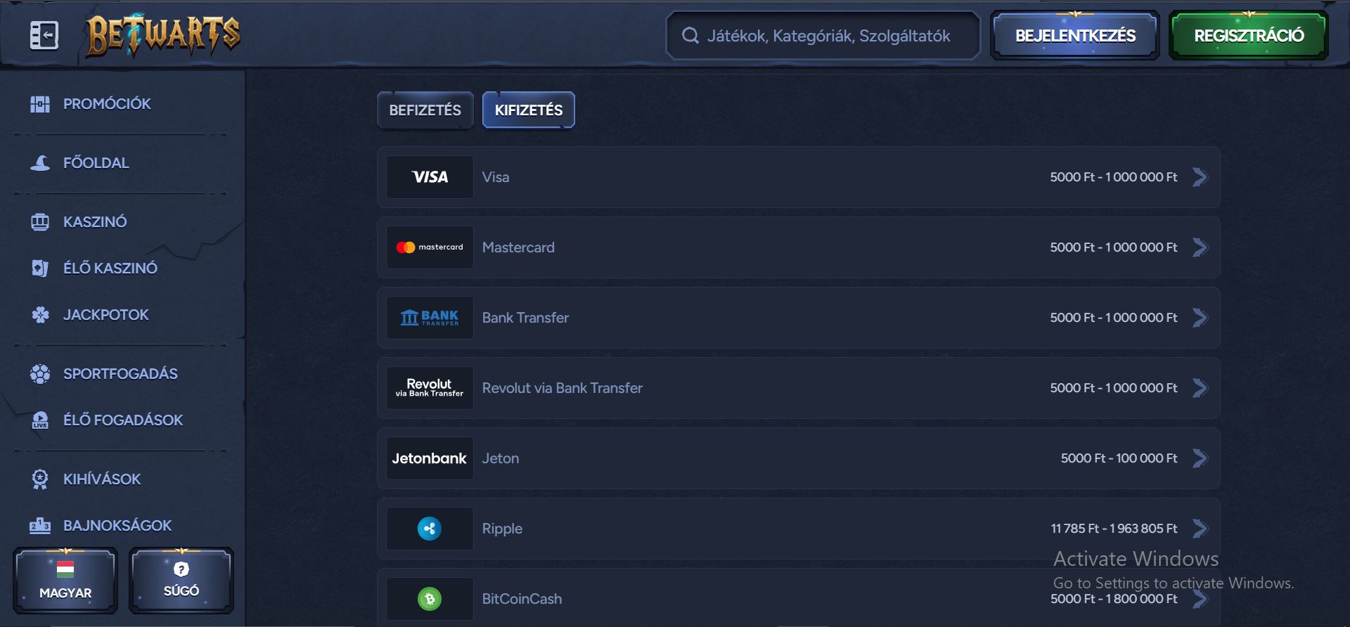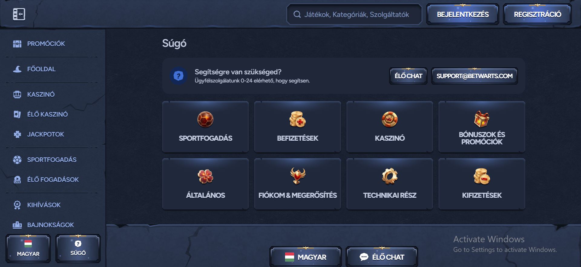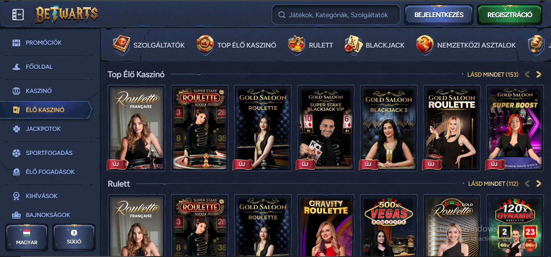 Kaszinók Magyarországon > BetWarts Kaszinó