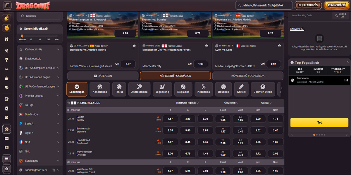 - Teljes sportfogadási integráció, amely lefedi a főbb ligákat előmeccses és élő fogadási lehetőségekkel.