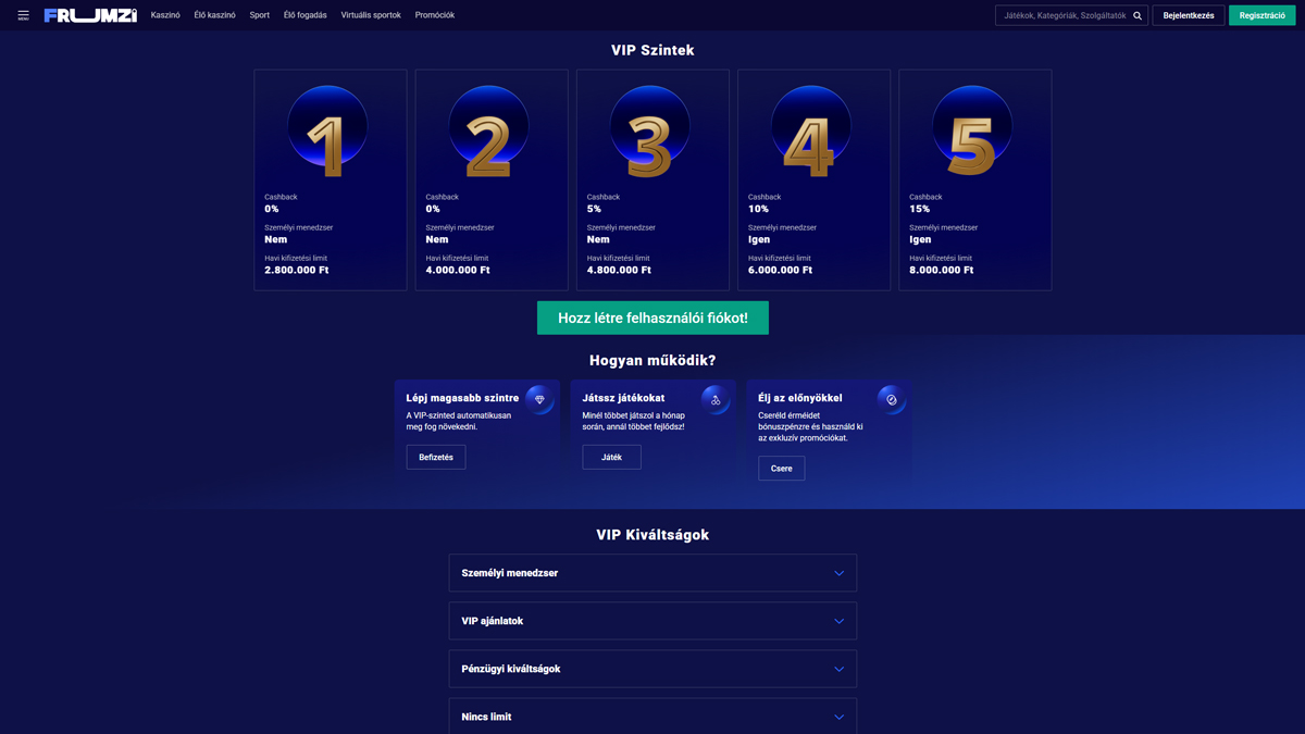 VIP Program VIP Program VIP program – többszintű hűségprogram gyakori vagy nagy értékű játékosoknak, személyre szabott jutalmakkal, például exkluzív bónuszokkal, gyorsabb kifizetésekkel és dedikált fiókkezelőkkel.