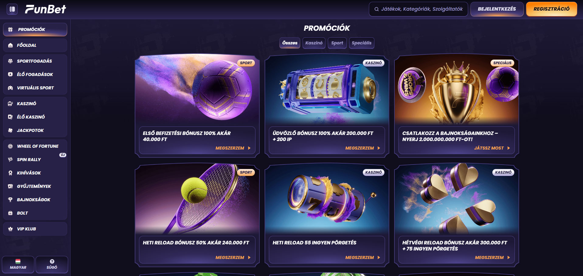 A sportfogadás elérhető a Funbet Casinóban a támogatott régiókban, és a magyar játékosok számára is hozzáférhető lehet, a jelenlegi elérhetőségtől és regionális korlátozásoktól függően.