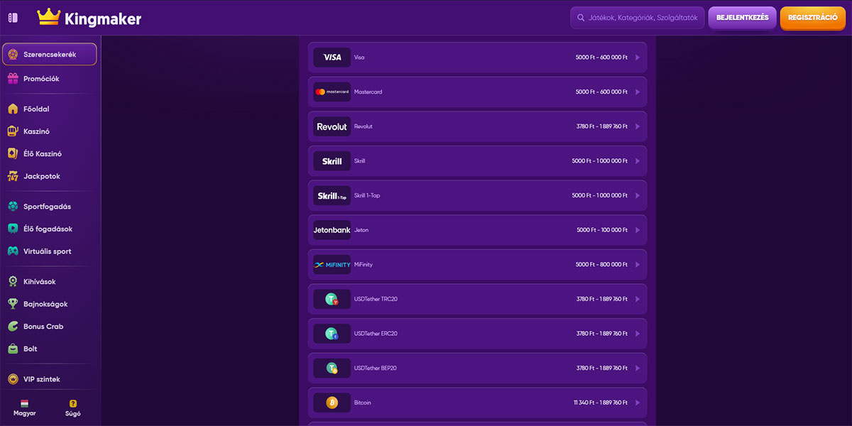 - Rugalmas fizetési módok, beleértve a kriptot, amelyet sok magyar használ.