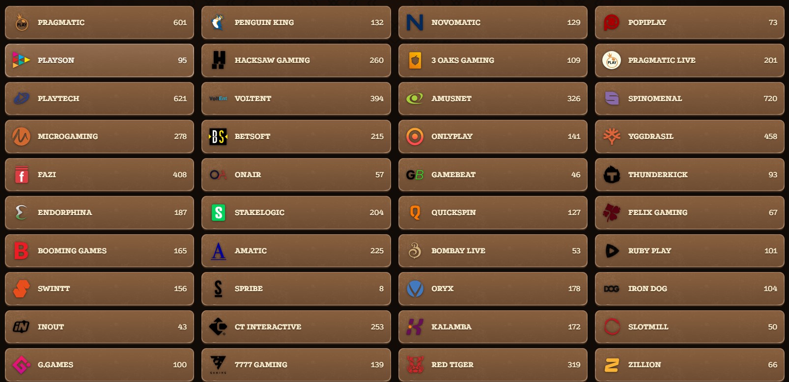 A Lizaro Kaszinó számos nemzetközi szoftver szolgáltatóval működik együtt, beleértve a nyerőgépek, élő kaszinó játékok és azonnali játékok vezető fejlesztőit.
