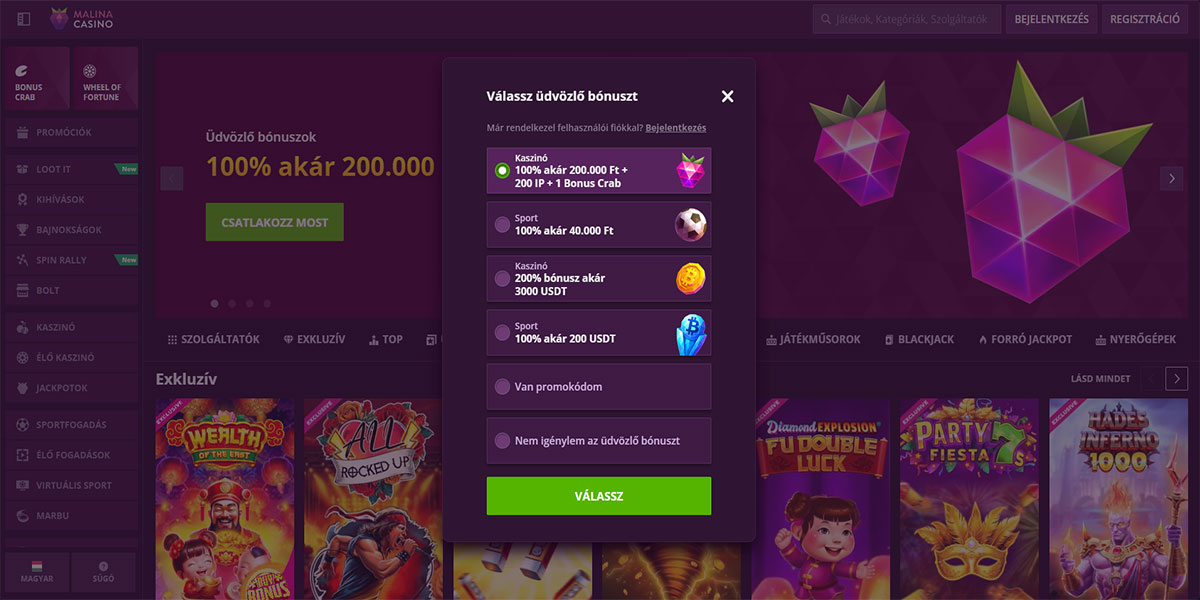 - Hatalmas választék bónuszokban.