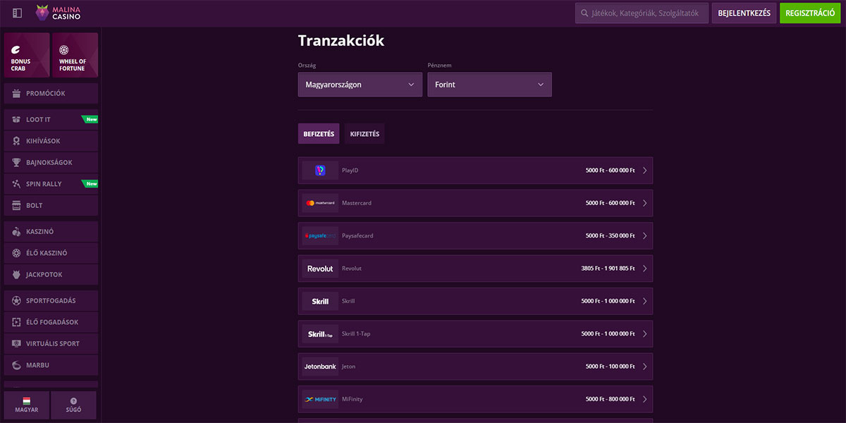 Kifizetések és Számla Ellenőrzés a Malina Casinónál