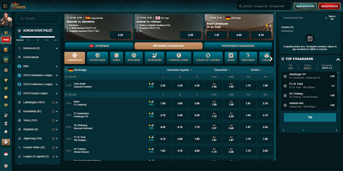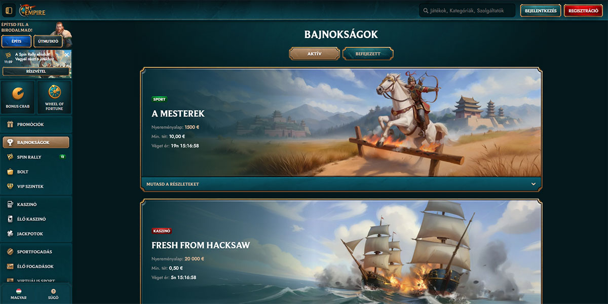 A sportfogadás elérhető a MyEmpire Casinoban a támogatott régiókban, és elérhető lehet a magyar játékosok számára, az aktuális elérhetőségtől és regionális korlátozásoktól függően.