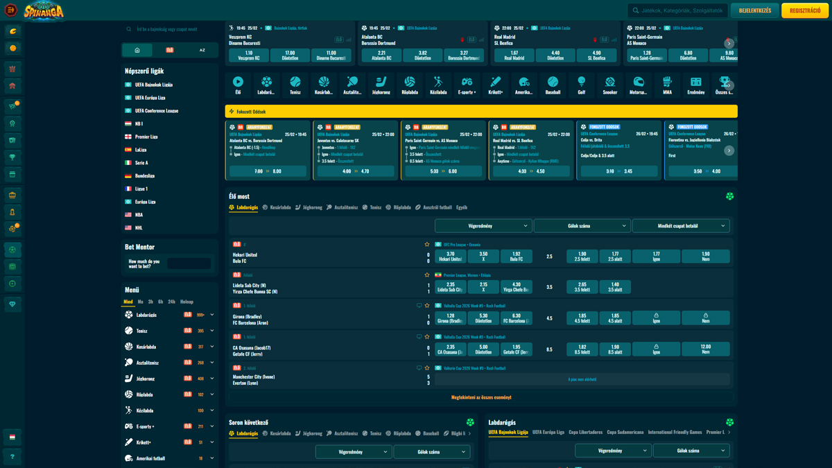 Navigáció & ElrendezésAz áttekinthető menük és szűrőeszközök segítik a játékosokat a gyors navigációban a kaszinó és a sport szekciók között.