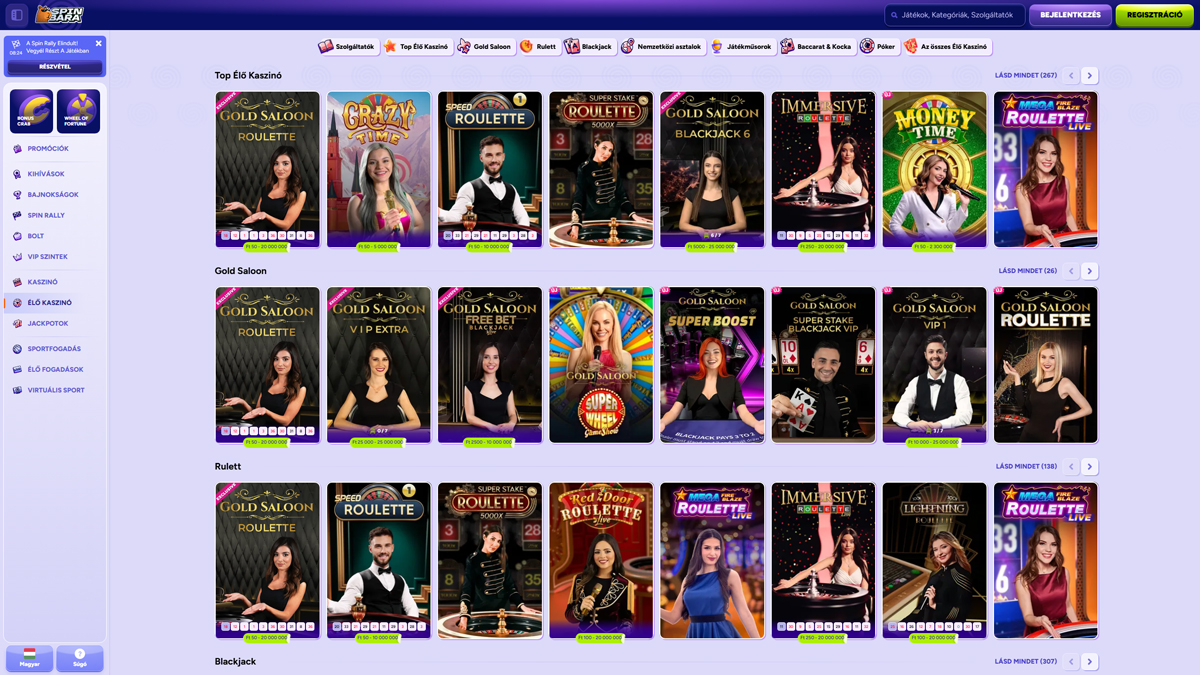 Élő kaszinó Élő kaszinó Élő kaszinó – valós idejű kaszinójátékok profi stúdiókból vagy földi helyszínekről, élő krupiékkal és interaktív asztali játékokkal.
