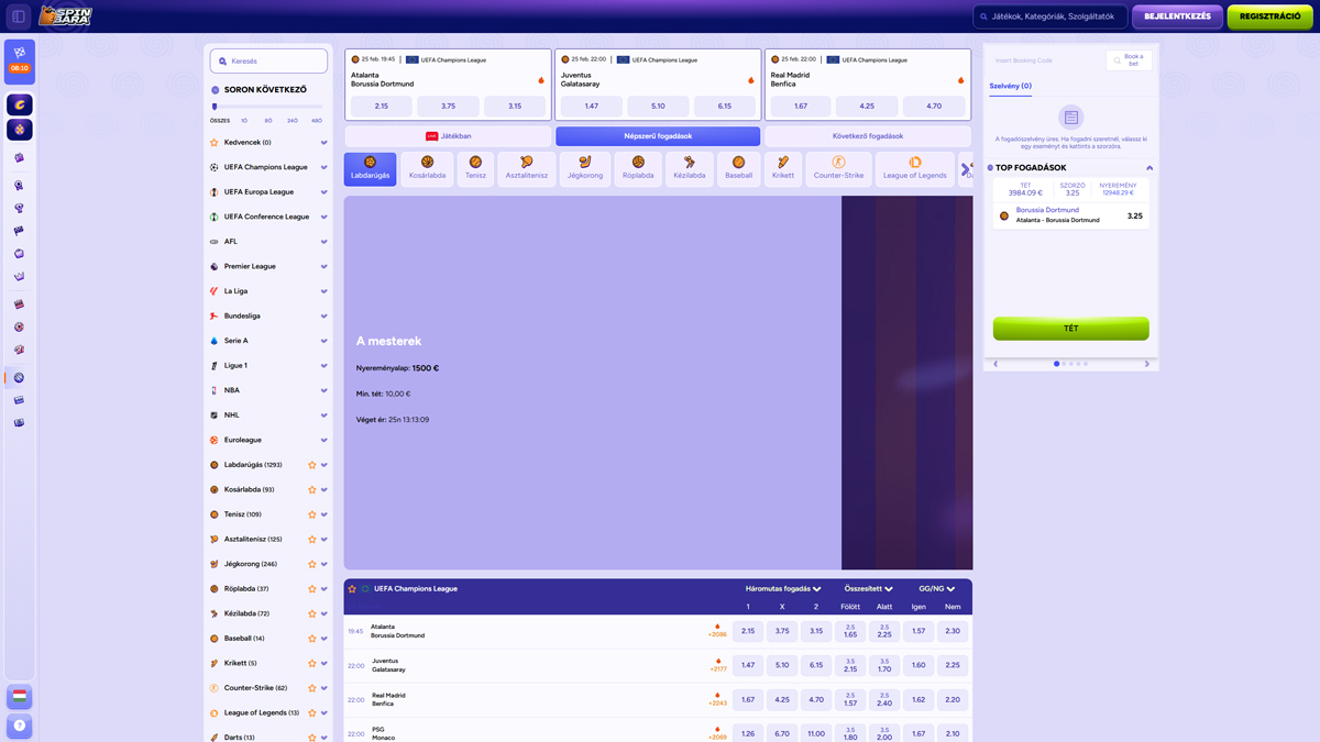 - Széles játékválaszték nyerőgépekkel, asztali játékokkal, élő osztós játékokkal, virtuális sportokkal és e-sportokkal