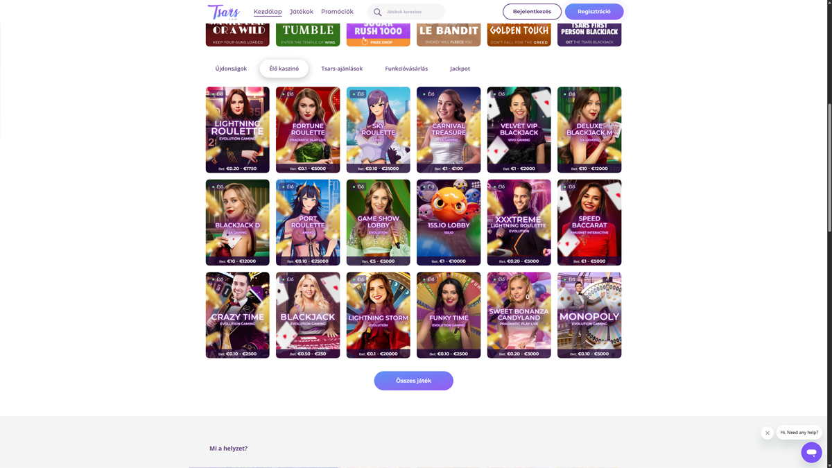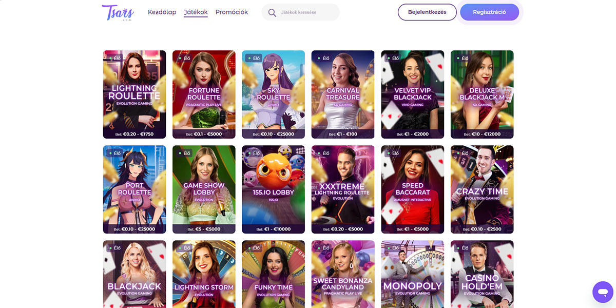 A Tsars Kaszinó egy online kaszinó, amely egy nagy, 2000 eurós üdvözlő bónuszt és 200 Ingyenes Pörgetést kínál, ami hangsúlyosan szerepel hivatalos weboldalán. A platform széles választékú kaszinójátékokat kínál, beleértve nyerőgépeket és számos más címet, amelyeket a játékosok a játéklistán keresztül böngészhetnek. A közzétett feltételek szerint a felhasználóknak 18 éven felülieknek kell lenniük, és egyet kell érteniük a kaszinó szabályaival és KYC eljárásaival a szerencsejáték előtt, és ezek tartalmazzák a fiók regisztrációját és ellenőrzési folyamatait. A kifizetéseket és a játékmenetet az oldalon kezelik, a felelős játékra és a világos felhasználói kötelezettségekre összpontosítva.