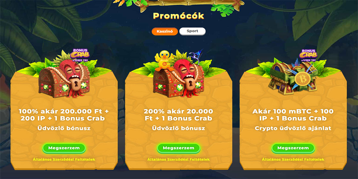 100%/200.000 Ft + 200 Ingyenes Pörgetés + 1 Bónusz Rák