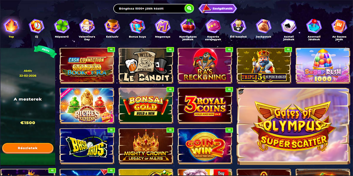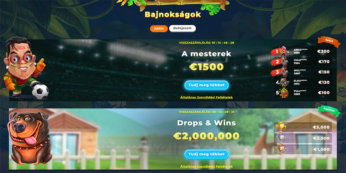 A Wazamba Kaszinó a SoftSwiss platformján fut, és a Rabidi N.V. üzemelteti, egyedi, kalandtémájú játékkörnyezetet kínálva, amely szórakoztatást és funkcionalitást ötvöz. Teljesen licencelt a Curaçao eGaming szabályozása alatt, nemzetközi közönségnek szól, és a magával ragadó dizájnra és felhasználói elkötelezettségre fókuszál. Az oldal válogatott játékválasztéka több mint 8000 játékot tartalmaz, beleértve magas volatilitású nyerőgépeket, progresszív jackpotokat és több mint 400 élő krupé asztalt olyan iparági vezetőktől, mint az Evolution és az Ezugi. Amit a Wazambát különlegessé teszi, az a gamifikált jutalmazási rendszere – küldetésekkel, szintekkel és törzsi tokenekkel –, amely a rutinjátékot interaktív utazássá alakítja. Gazdag kaszinó kínálata mellett a platform integrál egy reagáló sportfogadó részt is, amely mindent lefed a labdarúgástól az esportokig, lehetővé téve a játékosok számára, hogy zökkenőmentesen válthassanak a kaszinó izgalmai és az élő fogadás között egy egységes, vizuálisan lenyűgöző felületen.