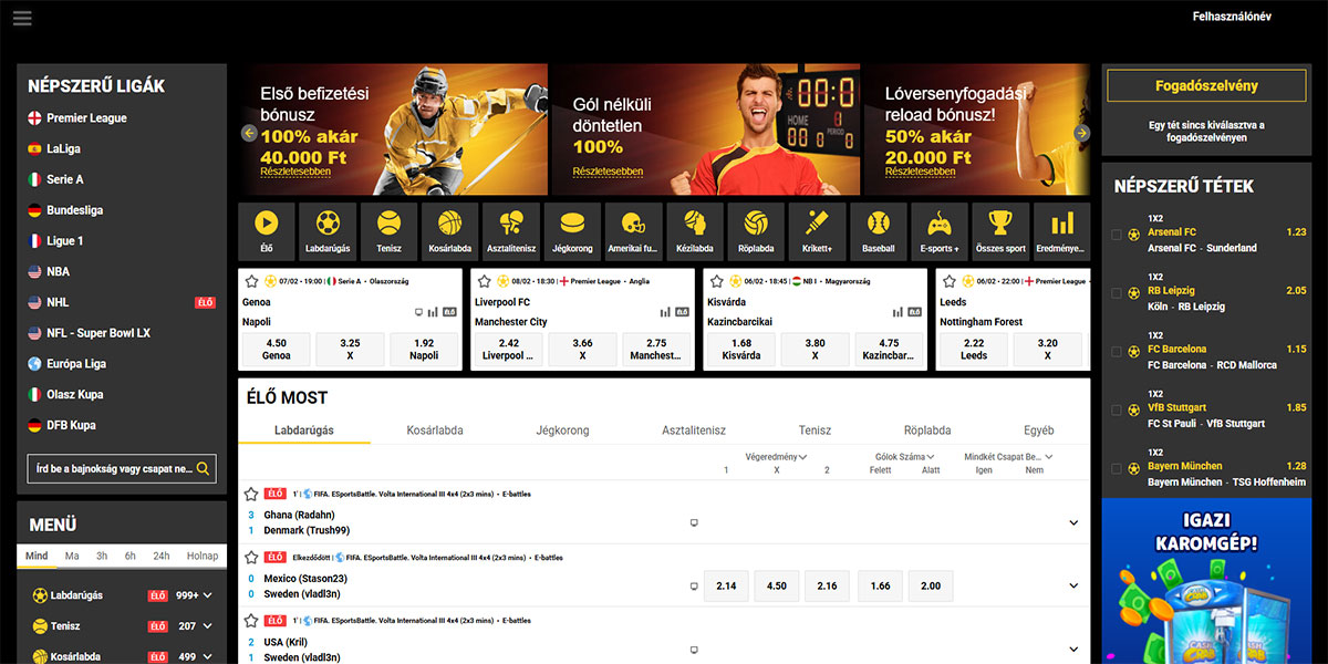 - Nagy játékválaszték nyerőgépekkel, live kaszinóval és sportfogadással egy fiók alatt.